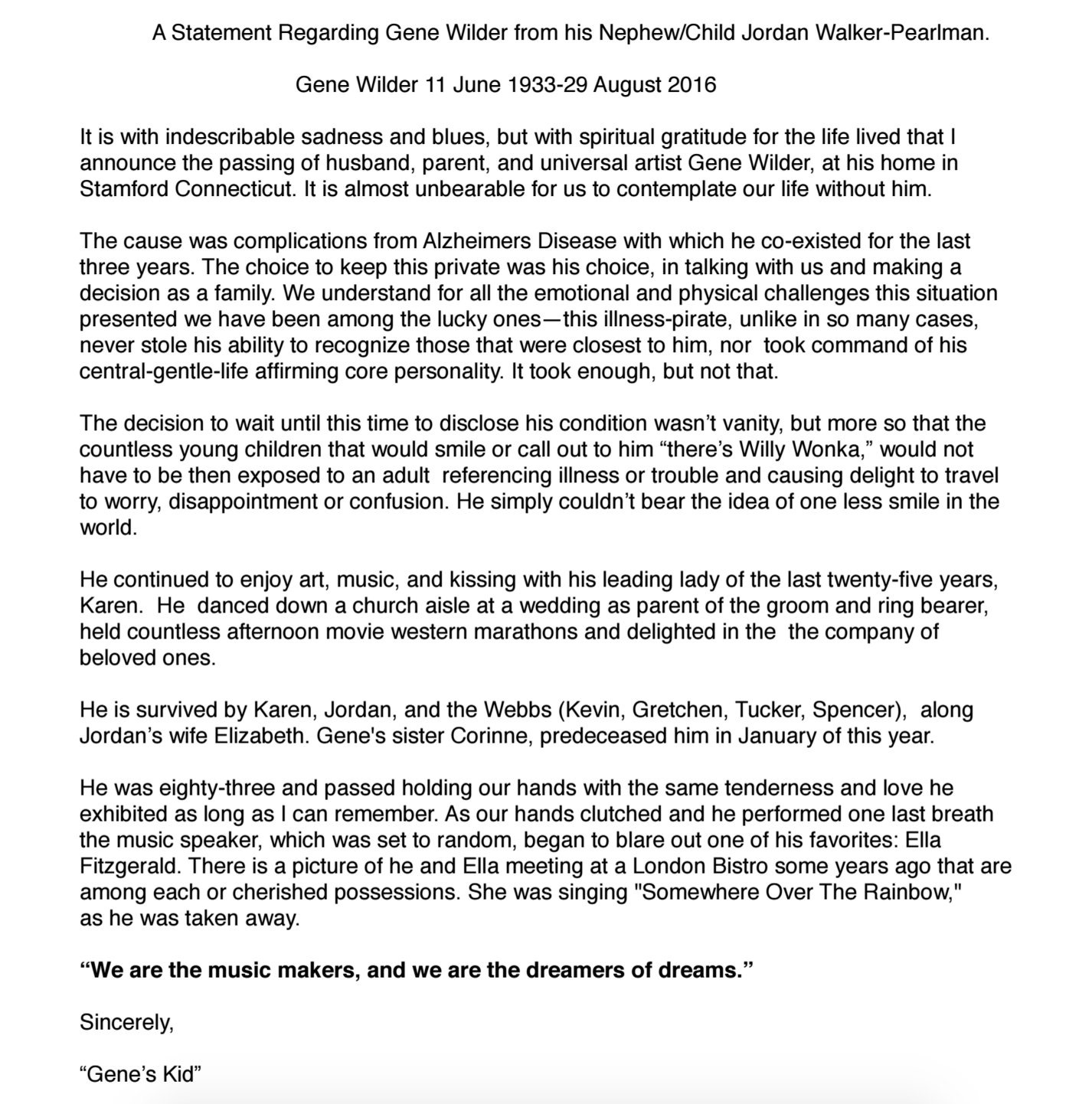 La verità è che sapere della morte di Gene Wilder è come venire a scoprire che uno dei tuoi zii preferiti d’infanzia, uno di quelli che ti faceva ridere anche se non capivi tutti i suoi scherzi, che sembrava saperla sempre più lunga di tutti e che, però, aveva quello sguardo un po’ più triste quando pensava di non essere guardato, ecco, che uno di quegli zii lì se n’è andato e tu non ti eri neanche reso conto che era invecchiato.