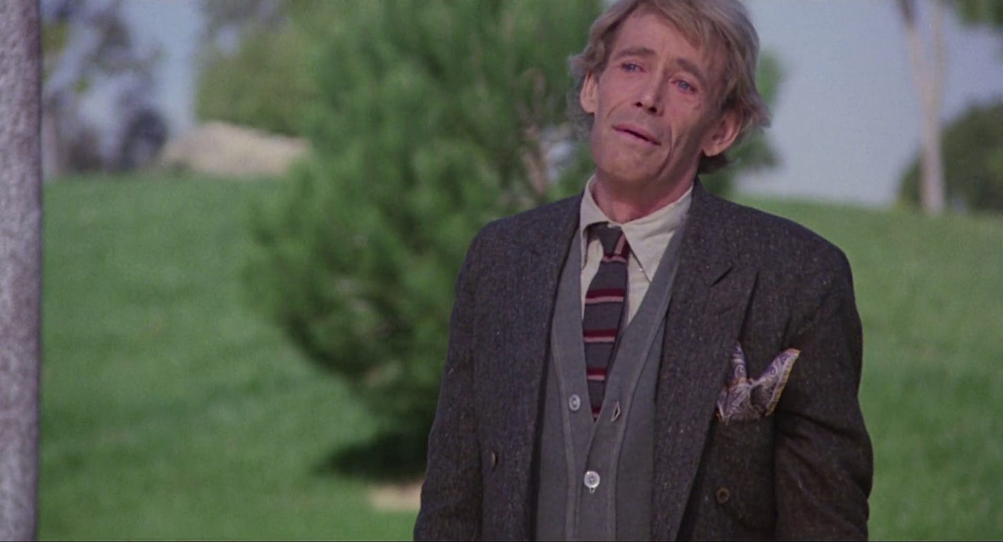 Il film li segue. Segue il tentativo di Walper di clonare sua moglie nella speranza di riavere ciò che ha perso, segue l’amore crescente di Boris per Barbara, segue quello di Meli – piena di vita e fuori di testa – per Walper, tra scene assurde, divertenti, a volte cringe, e un O’Toole che non sarà stato all’apice della carriera, ma resta sempre O’Toole, accento incluso.